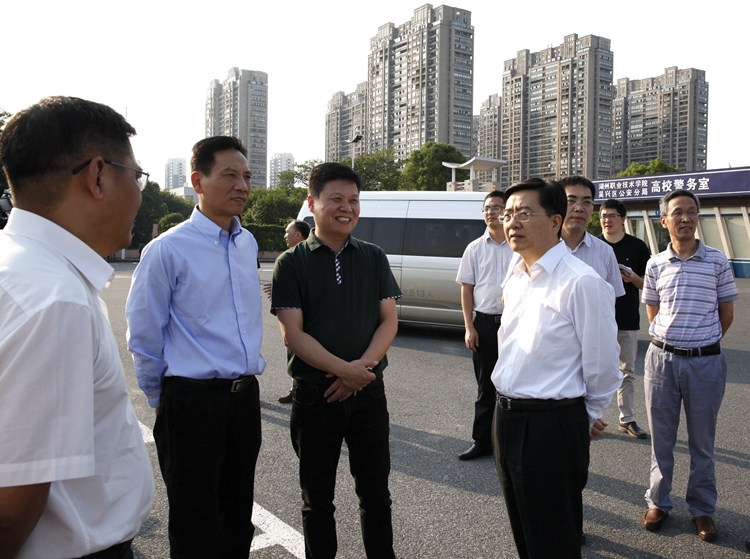 9月16日下午,市委书记陈伟俊专题调研文明创建工作。调研期间,陈伟俊在市委常委、宣传部长范庆瑜,副市长杨六顺陪同下专程来到我校调研指导,并实地走访察看了学府路“垃圾街”违章搭建整体拆除现场、学府路二期道路拓宽工程、巡视了校园和我校新建“大学生服务街”。校党委书记周家健、校长沈建民、校党委副书记丁根林等全程陪同调研。