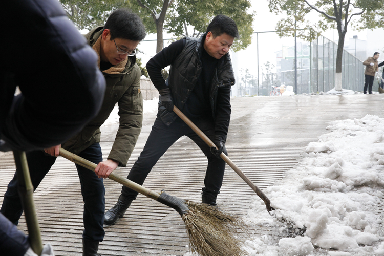为有效应对雨雪冰冻天气带来的不利影响,积极响应市政府应急办通知要求,切实保障校内车辆和师生通行安全,学校党委研究决定,在全校范围内组织开展“扫雪清路、除冰护树”专项行动。1月29日上午,由各党总支(直属党支部)牵头组织,学校党政班子成员、中层干部、教工党员、学生志愿者及资产公司后勤员工等参加了除雪行动。